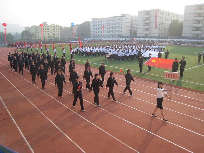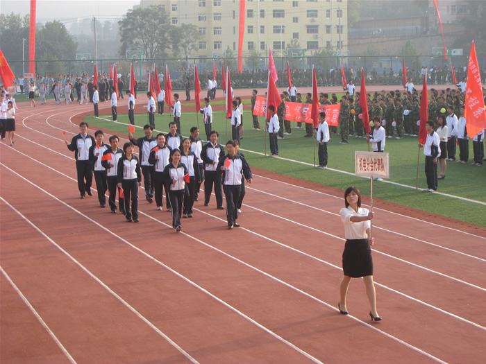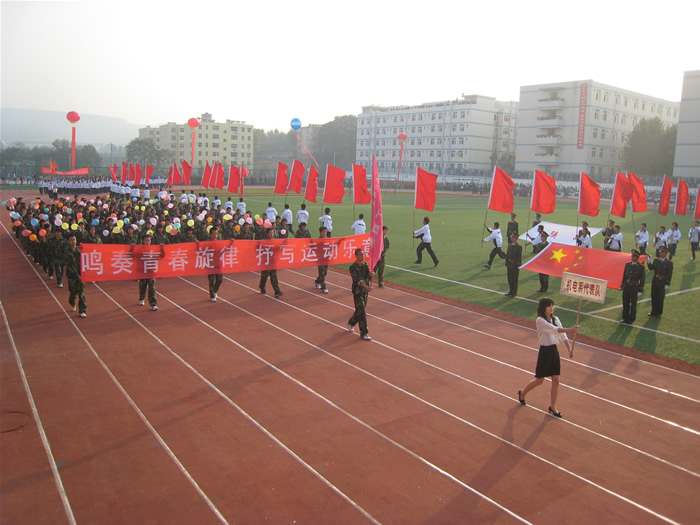 开幕式上,国旗队、会旗队、校旗队、彩旗队迈着整齐矫健的步伐走进运动场。各系(部)学生代表队及教职工代表队身着统一的服装,手持小国旗、气球,举着彩旗、标语,依次入场。在进行完升国旗、校旗仪式后,由副院长车绪武向运动会致开幕词,接着运动员代表、裁判员代表分别进行了宣誓,最后院长王晖宣布第四届田径运动会隆重开幕。开幕式上还进行了文体表演,包括腰鼓表演、太极拳表演、扇子舞、广播体操和军体拳表演。演员们的精彩表演,赢得了在场观众们阵阵掌声和欢呼声。