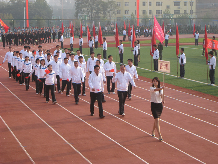 秋高气爽,丹桂飘香,风和日丽,彩旗飘扬。10月8日下午,学院在体育场隆重举行第四届田径运动会。院长王晖、院党委副书记纪委书记孟广胜、副院长车绪武、副院长杨云峰及各相关部门负责人出席了开幕式。全体运动员及裁判员参加了开幕式。开幕式由基础课部主任韩茂源主持。