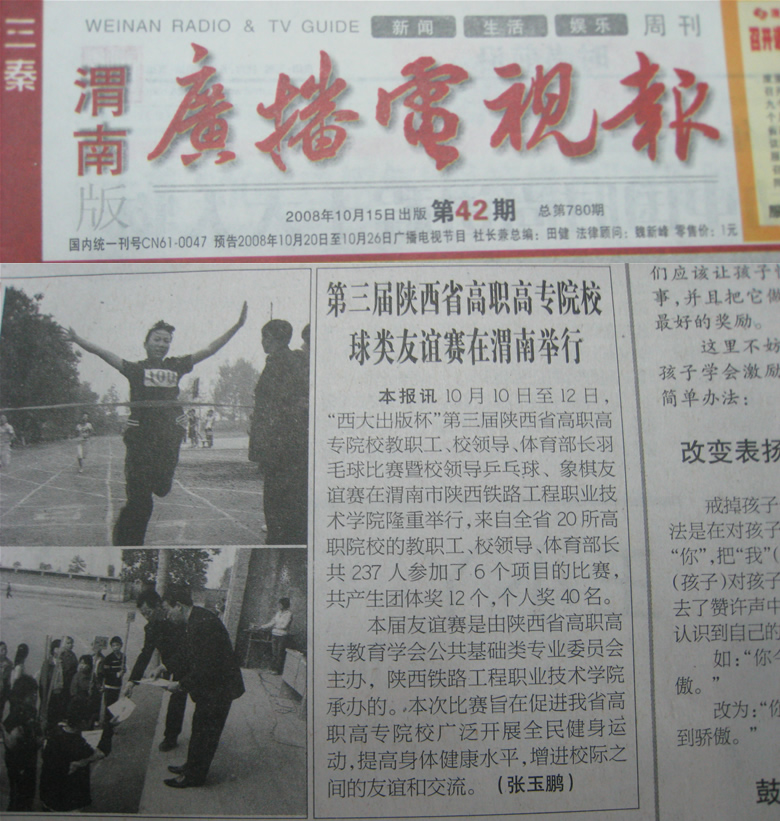 2008年10月15日渭南广电报第12版题:第三届陕西省高职高专院校球类友谊赛在渭南举行