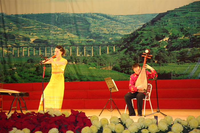 学院领导及100多名校友宾朋和学院师生一同观看晚会