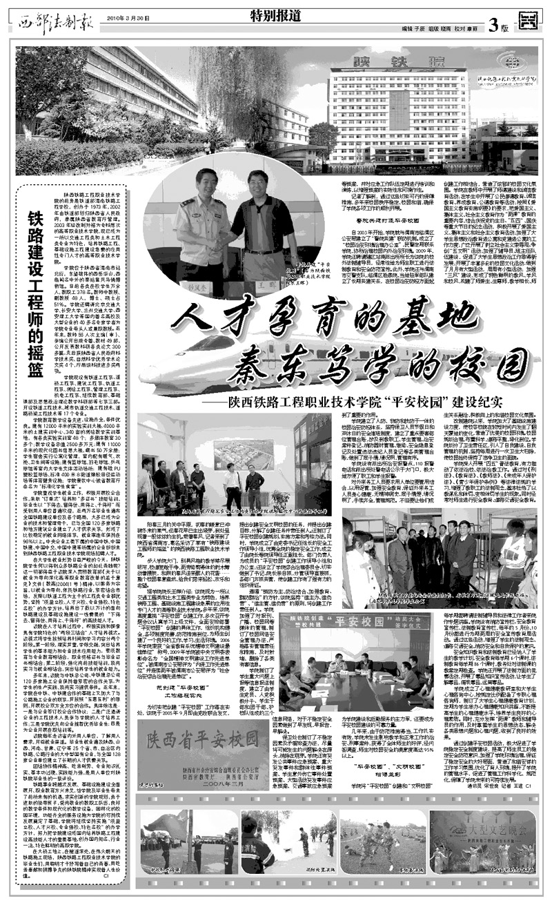 2010年3月30日西部法制报题:人才孕育的基地 秦东笃学的校园