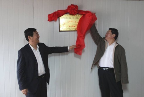 王长友和中铁一局副总经理赵怀利共同为实习基地揭牌