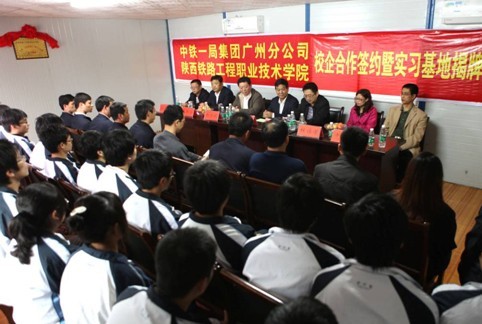 中铁一局集团公司副总经理、沪昆项目指挥长赵怀利与王长友共同为该院中铁一局集团广州分公司实习基地揭牌,该院测绘工程系主任张福荣、党总支书记亢新河代表学院向项目部七名工程技术人员颁发了兼职教师聘书。该院派出的测绘工程系的优秀教师和24名学生将在该实习基地开展为期三个月的现场教学,聘请的七名企业技术专家将为学生进行现场教学和实习指导。