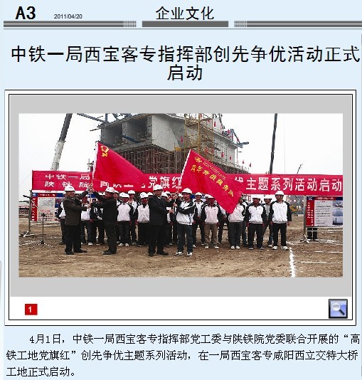 2011年4月20日中国中铁报第三版题:中铁一局西宝客专指挥部创先争优活动正式启动