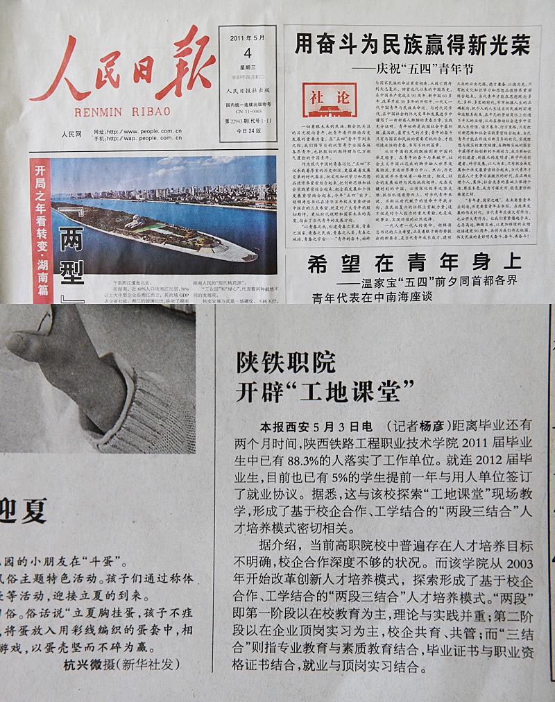 2011年5月4日人民日报第14版题:陕铁职院开辟“工地课堂”