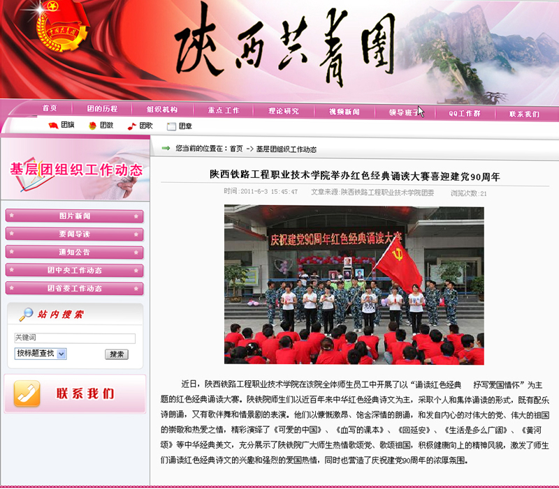 2011年6月3日陕西共青团网题:陕西铁路工程职业技术学院举办红色经典诵读大赛喜迎建党90周年