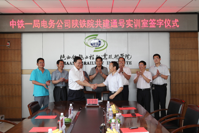 7月1日下午,陕西铁路工程职业技术学院与中铁一局集团电务工程有限公司举行通号实训室共建签字仪式。学院党委书记王晖、党委副书记车绪武、电务公司副总经理赵宪军、五公司书记王军义、中五公司总工邱伟出席签字仪式。车绪武和赵宪军代表校企双方签订了通号实训室共建协议。