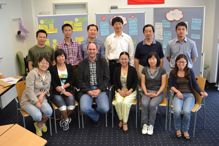 7月12日至8月30日,经教育部遴选,学院教师张修身、张福荣赴德国多特蒙哥,参加了由教育部主办的“2011年度中德高等教育职业教育师资培训项目赴德培训班(第一期)”。 此次培训,重点使学员在理解德国课程开发理念的基础上,掌握专业教学活动设计以及教学组织、教学评价的方式方法。在德期间,两位教师研修了“以行动和流程为导向的塑造职业教育过程、课程开发方法、职业教育流程的计划及对其进行教学方法的塑造”等内容,还参观了德国著名企业和工厂。(姜留涛) 与教师合影
