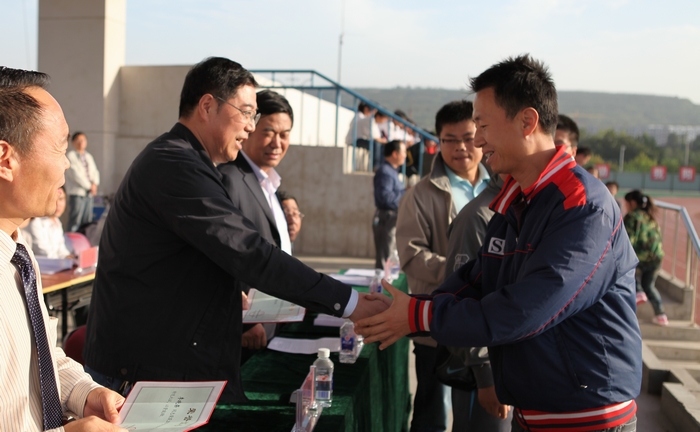 王晖向受表彰教师颁奖