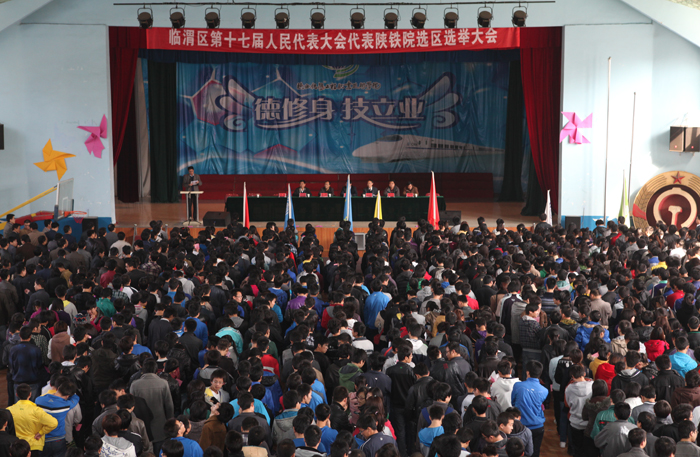 临渭区第十七届人大代表陕铁院选区选举大会现场