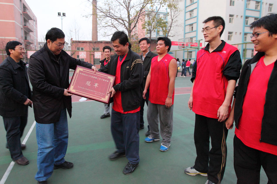 12月1日下午,陕西铁路工程职业技术学院建筑工程分会篮球队与教务分会篮球队进行了学院2011教职工篮球赛冠、亚军争夺战,最终建筑工程分会队以较强实力将冠军桂冠收入囊中。轨道工程与管理工程分会联队斩获季军头衔。至此,由院工会举办的本年度教职工篮球赛正式鸣金收兵。院党委书记王晖现场为冠、亚、季军球队颁发了奖牌,党委副书记、纪委书记兼工会主席杨云峰现场作了总结讲话并主持了颁奖仪式。