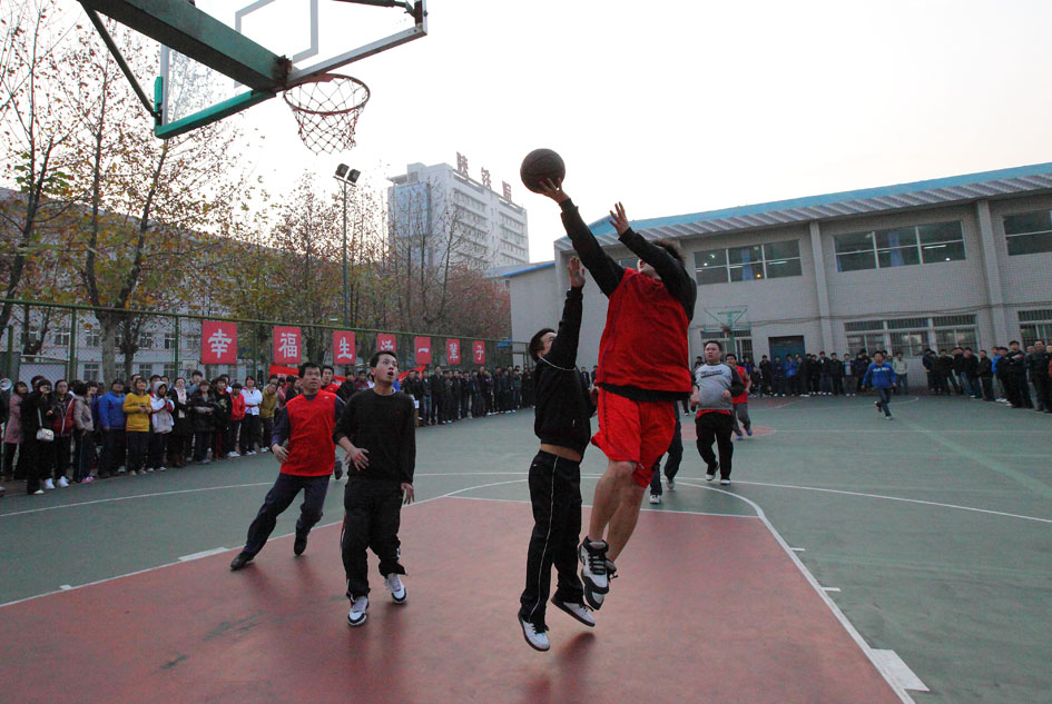 建筑工程分会篮球队与教务分会篮球队进行冠、亚军争夺战队的精彩场面