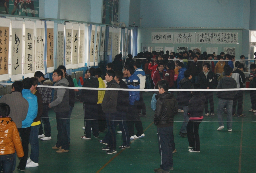 12月19日,由陕铁院学工部、团委主办的学生书画展在文体中心举办。学院党委书记王晖、党委副书记车绪武、副院长王闯亲临现场参观指导,渭南市书画协会副会长周同荣、王屯虎、冀香岚,渭南市老年大学常进宝等一行5人应邀参观了书画展览,并对学生进行现场指导点评。学工部、思政部、高新校区、团委负责人及1000余名书法爱好者参观了展览。
