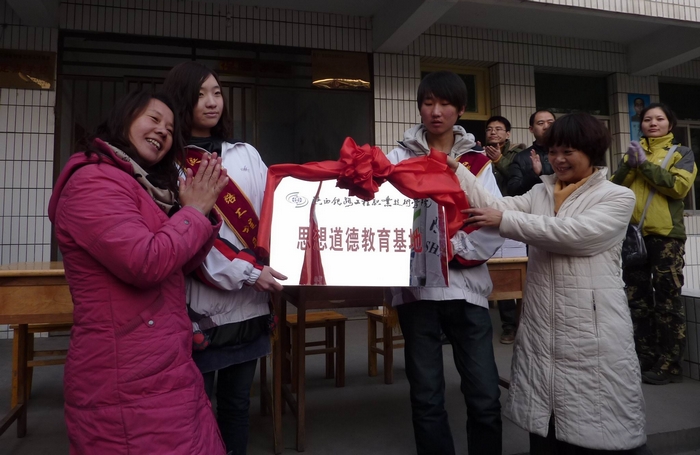 12月26日,学院思想政治理论教学科研部分别与渭南市临渭区金秋苑爱心护理院和曙光特殊教育学校举行“思想道德教育基地”挂牌和共建协议签字仪式。思政部主任李新萍、团委书记刘明学和思政老师、40名学生参加了仪式。