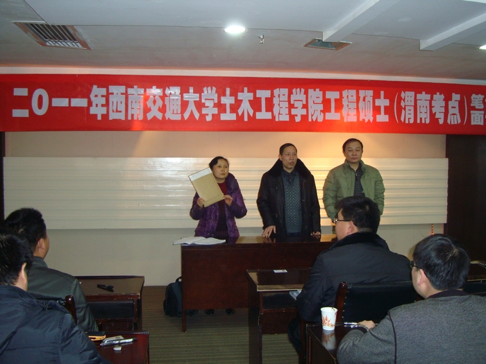 复试现场 1月10日至11日,陕铁院与西南交通大学联合开办的工程硕士班,12名通过国家GCT初试的学员全部通过学院复试。为了提高学院继续教育办学层次,在继续教育部的精心筹备下,学院与西南交大首次联合开办工程硕士班。为了保证办学质量,由西南交大土木工程学院江富长书记任考核组组长,对通过初试的学员按照资格审查、专业基础课笔试、综合面试等三个环节进行了全面复试。(齐红军)