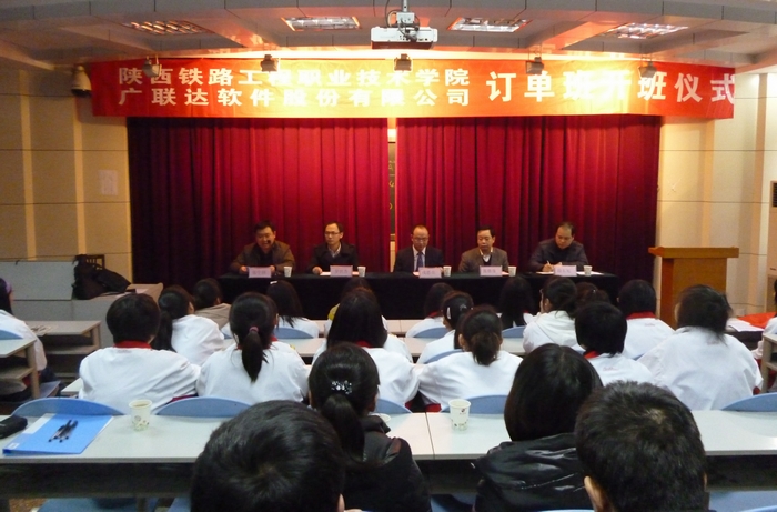 注:广联达公司自去年9月新生开学之际就来院接洽,举办企业宣讲会,通过遴选的方式对2011级学生进行选拔。经过筹备,最终确定了50名2011级学生组建广联达订单班。