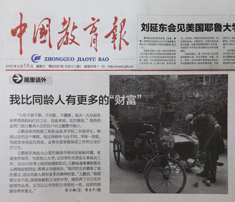 2012年3月14日中国教育报第7版题:我比同龄人有更多的“财富”
