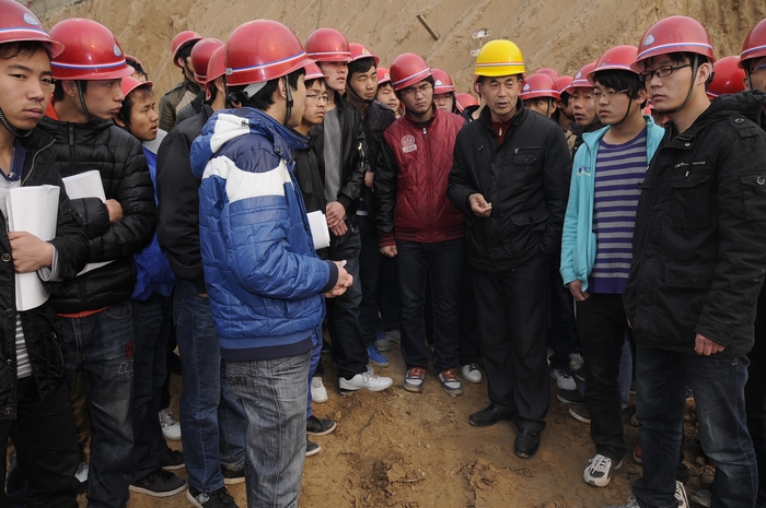 ◆现场变课堂,给力教学。3月13日,学院家属楼工地现场迎来了一群“新兵”,这是建筑工程系建工3101班的学生。本学期开始,建筑工程系把教育教学改革作为骨干建设的重中之重,理论授课紧密结合施工现场,使工地变成了课堂。学生结合所学课程,在施工现场认真听取现场工程师解说,既吸收了理论知识,又开阔了实践视野。(吕秋鸿)