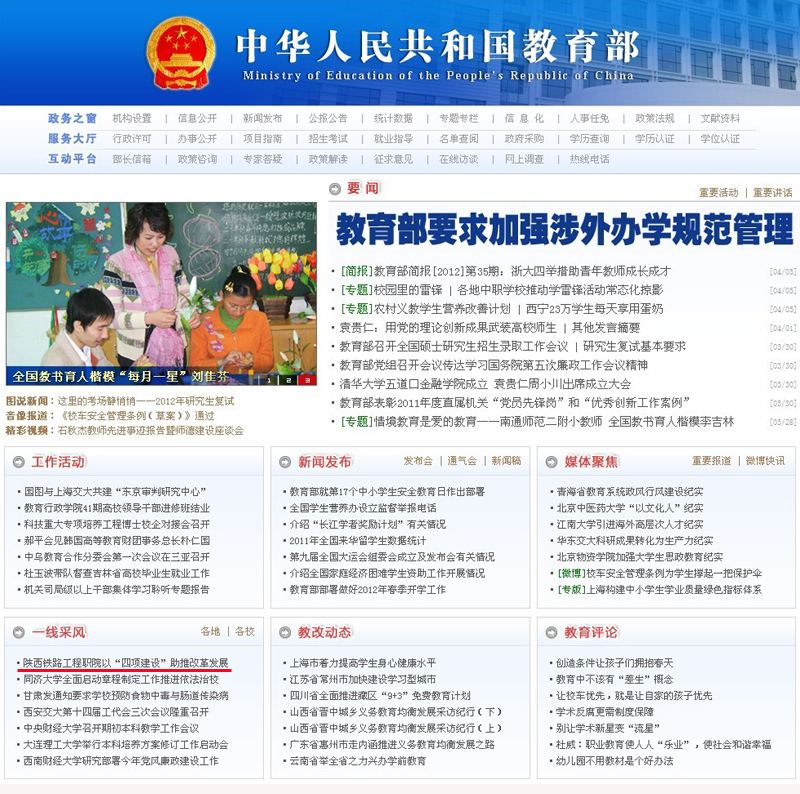 2011年以来,陕西铁路工程职业技术学院紧紧围绕学院中心工作,从校园文化建设、教学改革和专业建设、师资队伍建设和干部队伍建设等方面,在全院教职工中开展了“三问”调查问卷活动。根据征询意见情况,该院以国家骨干院校建设、校园文化建设、新校区建设、服务师生等四大工程建设为重要载体和抓手,自觉贴近师生需求,顺应师生期盼,大力推进学院教育事业科学发展,使“三问三解”活动成为学院推动改革发展的强大动力。 以骨干院校建设为抓手,服务学院教学改革 该院于2010年被批准成为国家骨干高职院校建设立项单位,2011年开始启动了骨干院校建设工程。该院紧紧抓住这一机遇,扎实开展质量工程建设,深入推进教学改革实践,全面提升办学质量和办学水平。经过研判当前及今后一段时期用人单位对人才需求的发展趋势、毕业生就业方向趋势,积极开展系部及专业设置、改造与建设。进一步优化、完善了“两段三结合”人才培养模式;加强课程体系建设,构建起了基于工作过程系统化的课程体系;不断完善教学质量监控体系,大力推进实践教学改革,建立起校企紧密合作的实践教学新体系。