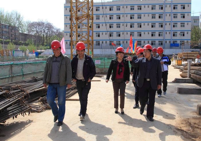 院工会教代会代表住宅建设督查小组审验学院高层住宅施工情况(右一为院工会主席、党委副书记杨云峰)