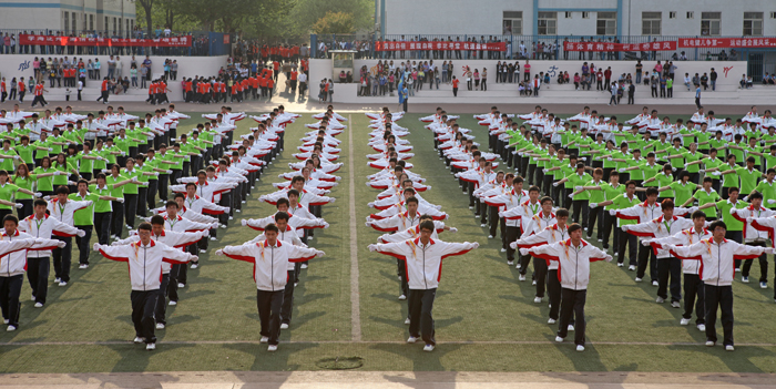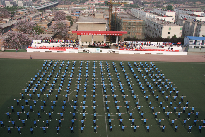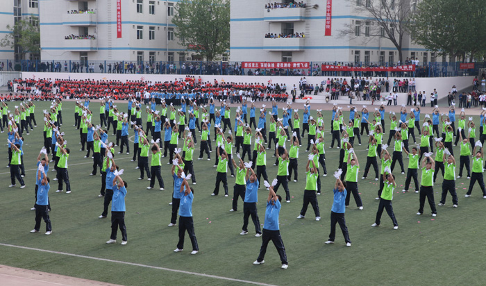 开幕式上,各系部还进行了团体操比赛,各系部精心组织,细心安排,精彩的表演赢得了在场观众阵阵掌声和欢呼声。