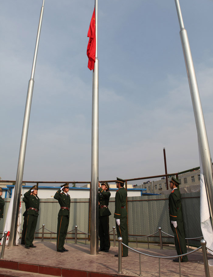 运动会开幕式上举行升国旗仪式