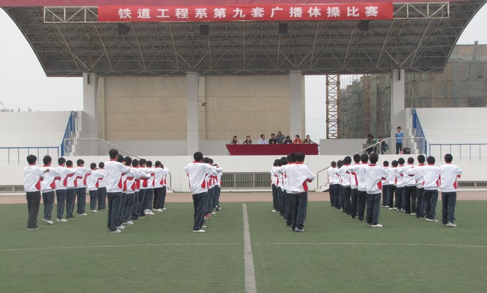 ◆铁工系举办广播体操比赛。4月11日下午,铁道工程系在学院操场举办了“第九套广播体操”比赛,2011级14个班级全部参加了比赛。系党总支书记亢新河与各年级辅导员、班主任观看了比赛并出任评委。