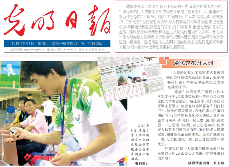2012年5月5日光明日报第9版题:爱心之花开大地
