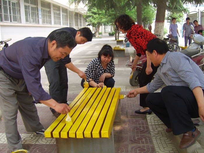 5月7日下午,学院后勤直属党支部全体党员在教学楼集合后,义务完成了校园19个木椅的打磨、清扫、刷漆工作。这是该党支部开展的“立足本职,服务师生,走进十八大”特色党日活动之一。 后勤直属党支部义务粉刷校内木椅 据悉,为了响应学院党委“关于深入开展创先争优基层组织建设年”活动号召,该党支部还将进行重温入党誓词,坚定理想信念、学习航天精神,提高后勤服务水平等党日活动。(王兴科)
