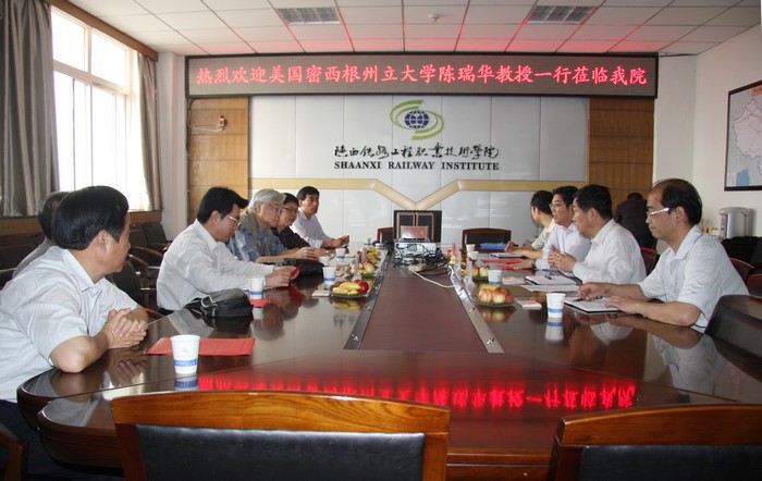5月8日上午,美国密西根州立大学陈瑞华教授在渭南市政府副秘书长雷立新以及市教育局等有关领导的陪同下,一行六人莅临学院考察交流。学院在11楼会议室召开交流座谈会,学院党委书记王晖、院长王长友、副院长焦胜军及人事处负责人出席座谈会。