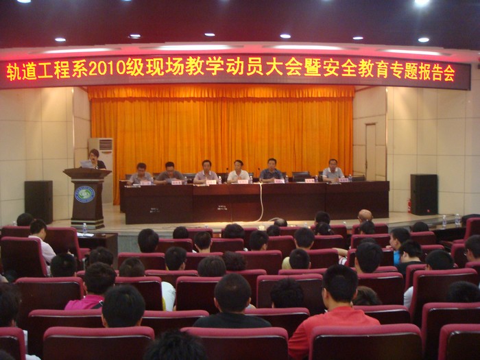 ◆轨道系110名学生将赴中铁二十局四公司现场教学。5月9日,轨道工程系在学术报告厅召开现场教学动员大会暨安全教育专题报告会。学院党委副书记车绪武、副院长焦胜军出席动员会,教务处负责人、轨道系全体教职工及该系2010级全体学生参加了大会。