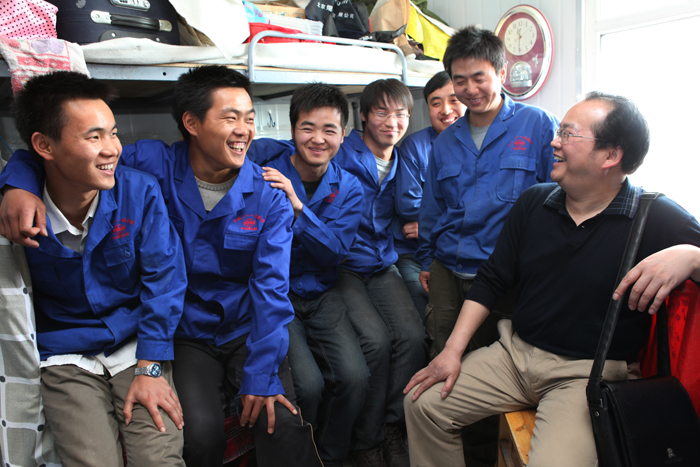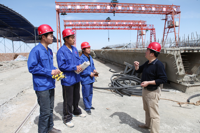 在项目部试验室、一工区、三工区、一号梁场、二号梁场等地,王庆东分别组织召开了学生座谈会,与学生面对面进行交流,听取学生工作汇报,了解学生思想动态,并勉励大家珍惜实习机会,锤炼技能,为顺利走上工作岗位奠定坚实基础。学生们对老师们长途跋涉来工地看望自己非常高兴,在座谈会上纷纷发言,向老师们汇报了去年4月份以来在项目部的工作和生活情况,并表示将珍惜在项目部实践的难得机会,在施工一线勤学多练,以优异成绩回报母校和企业。