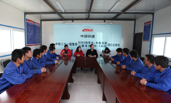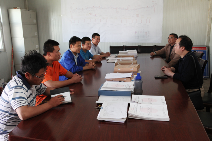 王庆东一行还分别与中铁二十一局一公司董事长兼党委书记石龙海、工会主席赵永宏、劳动人事部部长代亚力、奇木高速公路项目部经理吕鑫明、党支部书记徐沛伦、总工姜新华进行了座谈交流,从用人企业层面深入了解了学生顶岗实习期间的综合表现。并代表学院,对企业及项目部领导在学生顶岗实习期间工作、生活上给予的关心和帮助表示感谢。石龙海及公司、项目部领导对学院39名顶岗实习学生一年来的工作表现倍加赞赏,并对学院为企业培养输送大批高素质技能人才表示衷心的感谢,希望以后继续加强企校合作,共育人才,实现共赢。