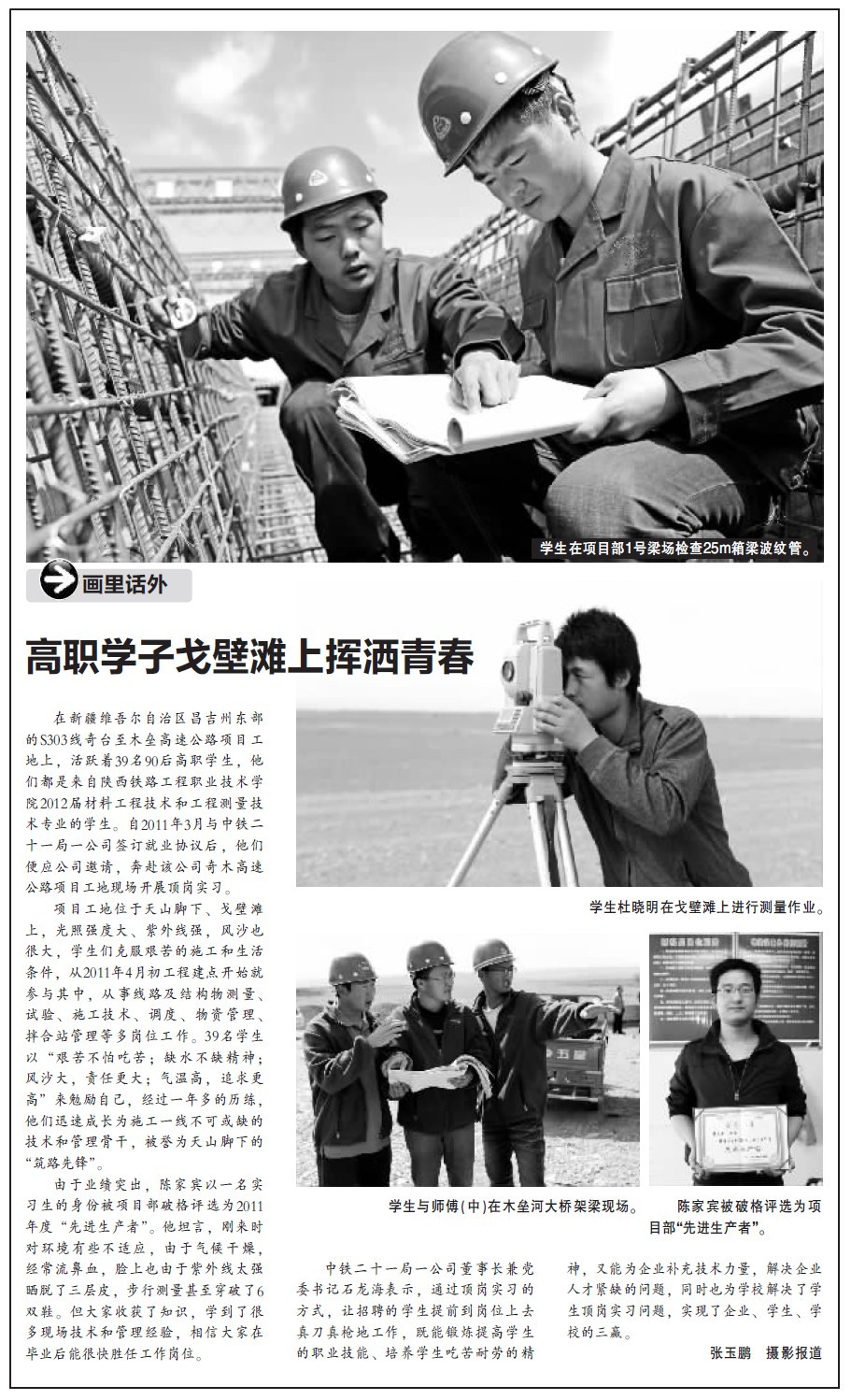 2012年5月30日中国教育报第6版题:高职学子戈壁滩上挥洒青春
