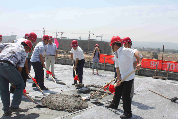 新指部、监理及施工单位负责人为学生公寓楼封顶 6月15日上午,学院新校区9号学生公寓楼比原计划提前5天完成主体封顶工作,10号学生公寓楼已于6月13日晚完成主体封顶。学院副院长、新指部常务副指挥长李林军、新校区建设招标采购领导小组部分成员出席封顶仪式,并亲手铲下最后一锨混凝土,顺利完成该楼的封顶。自此新校区一期在建工程全部完成主体封顶工作,为9月份学生的顺利入住奠定了良好的基础。 学院新校区9、10号学生公寓楼为6层砌体结构,建筑面积22785㎡,预计8月9日可顺利投入使用。(马少雄/文 王飞/图)