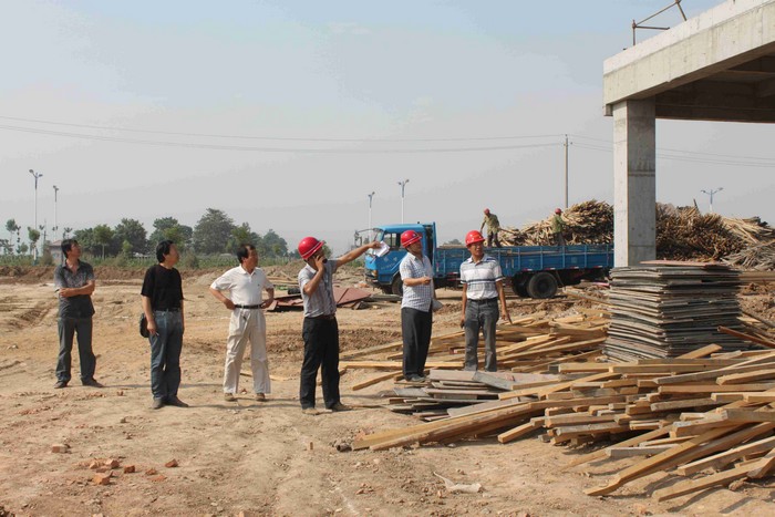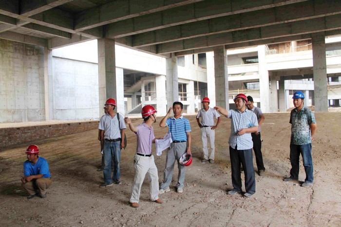 6月17日在烈日炎炎之夏,头顶酷暑,新指部常务指挥长李林军带领指挥部工作人员、工程总监理和总监代表一行11人,深入施工一线,在各标段展开分楼层质量、进度大检查,对检查中发现的问题当场指出,马上处理。每检查完一栋楼后就其施工情况展开评述,指出问题,提出建议,明确责任,专人负责,作好记录,以备复查。