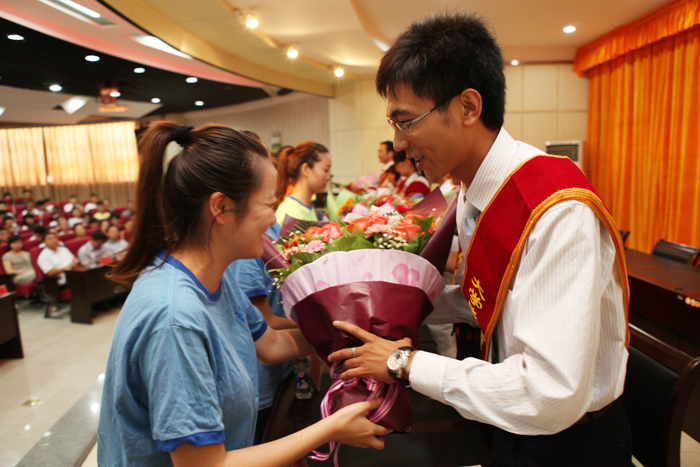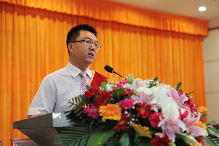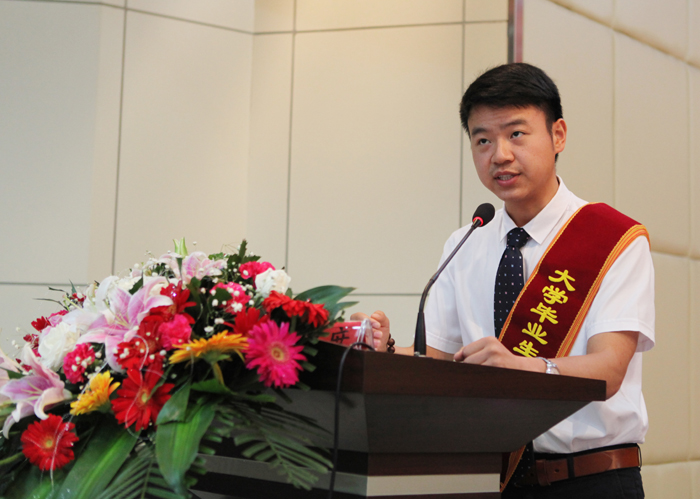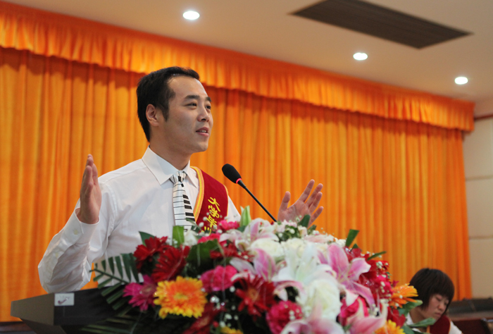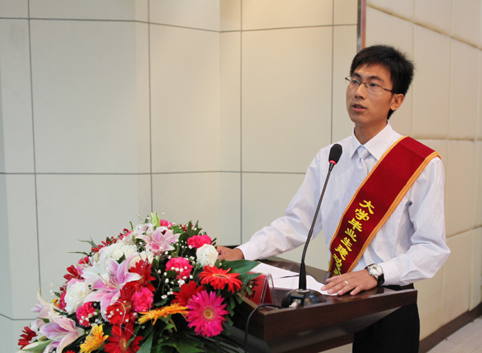 王晖书记在听了报告团的先进事迹后作了讲话,他指出,7位优秀毕业生的先进事迹感情真挚,语言生动,事迹感人,十分精彩;他们创业的历程和取得的成绩令人敬佩;他们创业的精神值得学习。他们是新一代大学生的杰出代表,他们用实际行动践行了社会主义的价值观,更充分体现了自己个人的价值。从他们的报告中看出他们都具有正确的人生观和价值观。有很强的社会责任感,有不断追求的可贵精神,有坚忍不拔的坚强意志和毅力,有扎实的专业知识和技能,有良好的综合能力和素质,有创新能力和组织能力。他相信,7位杰出大学毕业生建功立业的报告,必将给在座的各位学生代表带来新的启迪、新的感悟,新的航标。也必将给在座的各位教师的教育教学工作带来深深的思考。(王力/文 张玉鹏、郭伟/图)