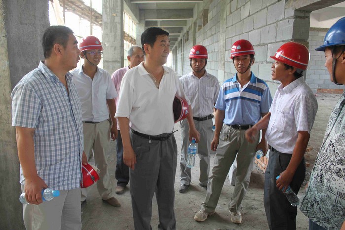王长友听取施工单位有关人员汇报 6月24日上午,端午假期尚未结束,院长王长友就来到新校区建设指挥部,在副院长李林军、新指部各部门负责人及监理的陪同下,冒着酷暑全面视察了新校区一期在建工程,并召开紧急会议,详细部署了新校区建设后续工作,对反映和发现的问题提出了整改措施和具体要求。(马少雄)
