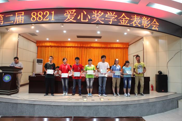 会上,学工部副部长李新萍宣读了《关于颁发第二届8821爱心奖学金的决定》。出席大会的领导向获得爱心奖学金的学生颁发荣誉证书。获奖学生代表作了发言。