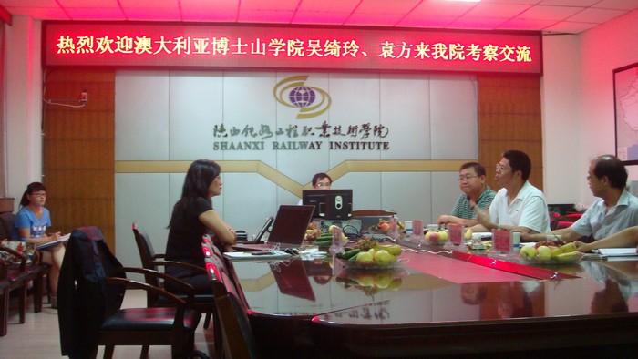 8月13日,澳大利亚博士山TAFE学院国际项目总监吴绮玲、国际研究和项目专员袁方来陕铁院考察交流。学院副院长王闯及人事处、建工系、轨道系负责人在11楼会议室接待了来访客人。