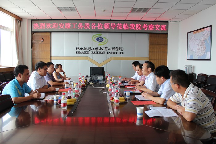 8月16日,西安铁路局安康工务段党委书记彭有辉、安全科科长周敏及紫阳车间党总支书记邓元金一行三人来陕铁院考察交流。学院党委副书记车绪武及校企合作处、铁道工程系负责人陪同考察并进行座谈,暑期赴安康工务段锻炼的老师参加了座谈会。