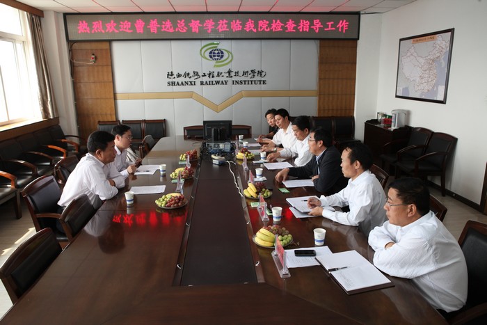 9月18日上午,省政府教育督导团总督学曹普选在省教育厅政策法规处副处长樊世杰陪同下,莅临陕铁院检查指导工作。院党委书记王晖,院长王长友,党委副书记车绪武,党委副书记、纪委书记杨云峰,副院长王闯、焦胜军在十一楼会议室向上级领导汇报了学院工作。