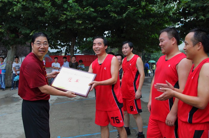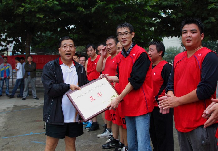 9月20日下午,随着陕西铁路工程职业技术学院2012教职工篮球决赛开赛哨响,一场秋雨也不期而遇。雨水连连中,教务分会队与建筑分会队、机关一分会队与铁道分会队分别为冠亚军和季军的争夺而激烈鏖战。比赛中,运动员在秋雨扑面、场地湿滑的困难条件下,发挥“吃苦奉献,拼搏争先”的陕铁院精神坚持比赛,获得了在场观战师生的阵阵喝彩。最终教务分会队以较强实力将冠军桂冠收入囊中,建筑分会队获得亚军,铁道分会队斩获季军头衔。至此,由院工会举办的有10支球队参加的本年度教职工篮球赛正式谢幕。院党委书记王晖参加了决赛的比赛并现场为冠军队颁发了奖牌,党委副书记、纪委书记兼工会主席杨云峰为亚军、季军队颁发了奖牌。(季露)
