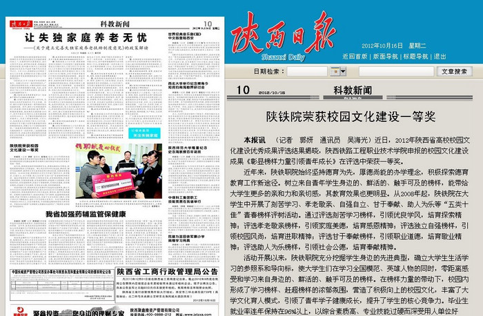 本报讯 (记者 郭妍 通讯员 吴海光)近日,2012年陕西省高校校园文化建设优秀成果评选结果揭晓,陕西铁路工程职业技术学院申报的校园文化建设成果《彰显榜样力量引领青年成长》在评选中荣获一等奖。