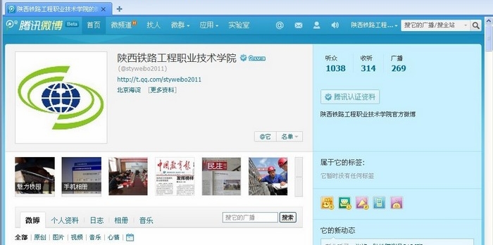 陕铁院在腾讯微博开设了校园官方微博