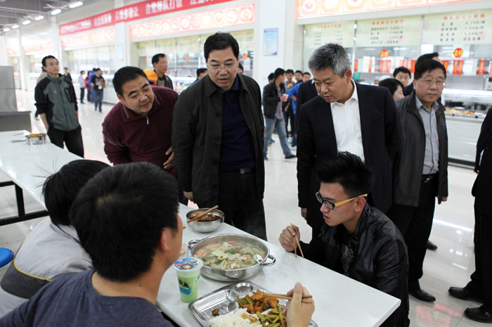 徐新荣市长来到餐饮中心视察,并和就餐学生亲切交流,询问饭菜质量和价格