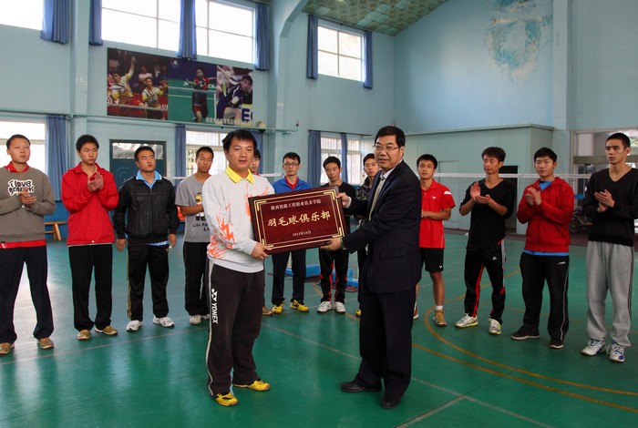 王晖代表学院为羽毛球俱乐部授牌 10月30日下午,学院工会羽毛球俱乐部在学院文体中心挂牌成立。院党委书记王晖代表学院向俱乐部授牌,党委副书记车绪武代表学院为俱乐部成立祝贺。党委副书记、纪委书记兼工会主席杨云峰主持了挂牌仪式。学院体育部负责人及俱乐部成员等二十余人参加了挂牌仪式。(季露 文/图) 车绪武代表学院祝贺羽毛球俱乐部成立 杨云峰主持羽毛球俱乐部挂牌仪式 羽毛球俱乐部教练任文宣读俱乐部章程及机构设置 羽毛球俱乐部挂牌后队员们随即进行了第一次训练