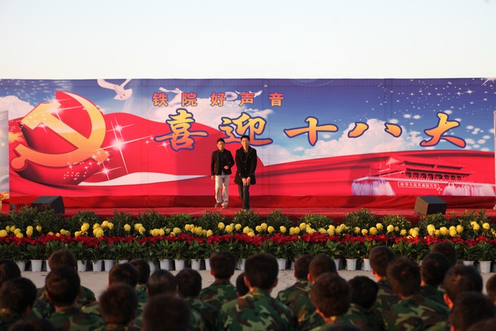 10月31日下午,学院在高新校区广场隆重举行了“铁院好声音 喜迎十八大”迎新歌会。学院党委副书记车绪武,党委副书记、纪委书记杨云峰,副院长王闯出席歌会现场,与2012级新生共联欢。院高新校区管委会、学生处、教务处、铁工系、建工系、道桥系、管理系等部门负责人也一同观看了演出。