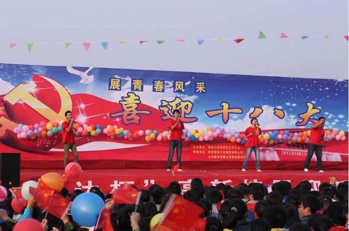 ◆建工系举行“展青春风采,喜迎十八大”迎新生文艺演出。11月2日下午,建筑工程系在新校区广场隆重举行了“展青春风采,喜迎十八大”迎新生文艺演出。学院副院长王闯,组宣部、高新校区管理委员会、新校区建设指挥部、学生处、院团委及建工系负责人出席现场,观看了演出。