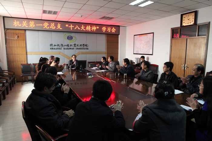 该系党总支书记郗春荣要求大家在各班认真组织同学学习十八大精神,并以十八大精神为指引,发扬陕铁院精神,好好学习,为创造祖国美好的未来和幸福生活而努力。 (雷波)